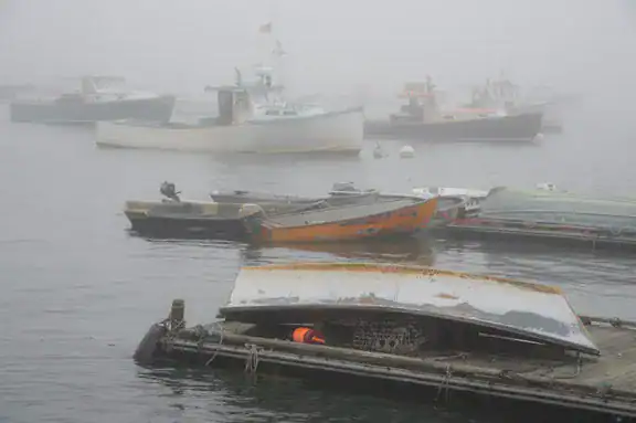 Two handheld pictures from Acadia National Park last week. Snap shots really, taken to help my workshop participants with a few compositions, but nice. Here is how I did it. Bass Harbor in the fog ISO 2000 (on my Nikon D4 I can shoot publishable shots up to ISO 6400 ) to get a high enough shutter speed. F8 because I didn’t need a lot of depth of field with the fog in the background (can’t focus fog). About 100mm on my Nikon 24-12omm lens. Shot a burst of 6 shots and picked the best one. Used aperture priority and matrix (evaluative) metering.Automatic white balance. No auto compensation. Focused on the dory in front to make sure it was in focus. Zoomed in to cut out the blank white sky above and the dull gray water in front. Top of Cadillac Mountain, Acadia National Park ISO 2500 because it was very windy and I needed a shutter speed of at least 250th of a second. F11 for depth of field. I didn’t need f16 or f22 because the closest part of my composition was 20 feet away (the closer the foreground in your composition the smaller the f-stop you need for adequate depth of field). About 35mm to capture the big scene from foreground out to the Cranberry Isles. shot a burst of 10 shots (because of the buffeting wind). Used aperture priority and matrix (evaluative) metering.Automatic white balance. Auto compensation at -.7 to control the bright sky (at 0 auto compensation the sky blew out). Focused in the middle of the red plant in front to make sure I got the most in focus (From you point of focus there is always a little depth of field coming toward you and a lot of depth of field extending away from you- so focus close). Tilted the camera down to cut out most of the blank white sky above and zoomed in a bit to cut out the dull gray rock in front.
