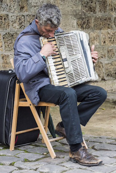 I found this accordion player on the banks of the Seine in Paris. He was surrounded by a crowd of people and having a good time playing for the people. I went up and put some money into his case and asked quickly if I could take some pictures. He smiled and nodded yes so I knelt down to get to his eye level and took about 45 shot. I kept three. One of all the player, one close up and one teaching close up. The reason I threw out the other 42 was either because his expression wasn’t the best or his hand gesture wasn’t the best. I got about 8 I liked and kept the best 2 (plus the teaching image).