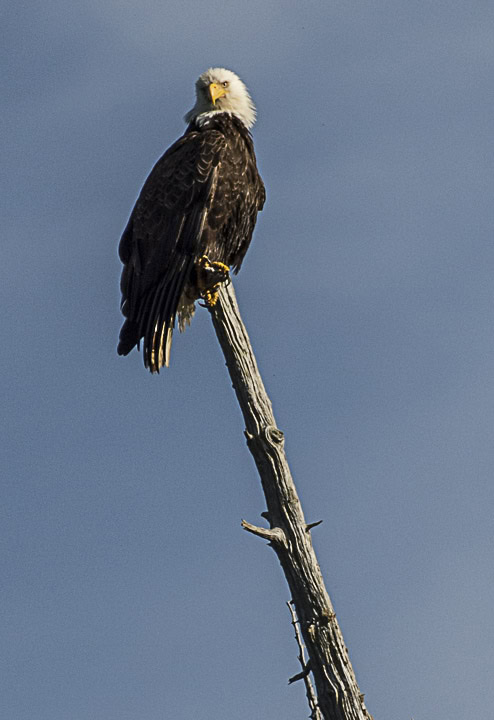 So let’s pretend you are on a boat and want to use your 300mm f4 lens to photograph a bald eagle perched perfectly on a snag against blue sky. What is the best way to set up your camera?