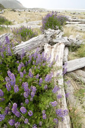 Look at the photo above. When you take a close look at it you will notice that half of the composition is within 5 feet of the camera. In fact, three quarters of the composition is within about 8 feet of the camera! I am emphasizing the pretty lupine and big driftwood logs. That is what I think is compelling about this scene so I made it a big part of my composition. The last one quarter of the composition places the lupine and logs on a beach.