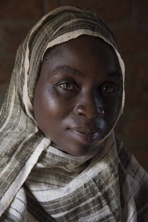 I asked if I could take their picture inside their house. This is the secret. If you go inside and you place the person near an open door or window you get beautiful, soft light. Plus, since it was dark inside the background faded away and didn’t become a distraction. Then, with a little pantomiming and smiling I was able to make a connection with the mother and get eye contact and a good expression.