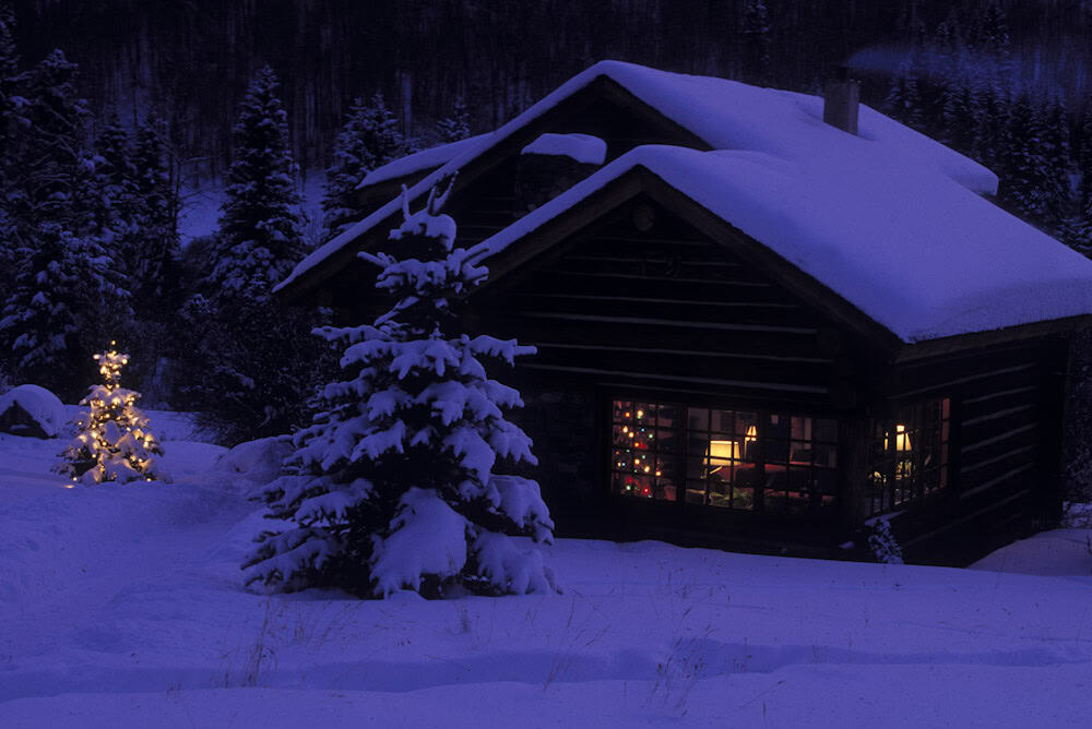 Since we are on the topic of winter wonderland photography I thought I would add one more twist to the topic. Winter wonderland pictures are especially nice at twilight. Of course, almost anything is especially nice at twilight but with lots of snow on the ground and every where else twilight is a great time to photograph winter scenes. If you can find an old cabin or a lit Christmas tree or both (!) it is great. It is dark enough outside that the lights will be on be there will still be enough light for the details of the landscape to be recognizable. Remember, twilight is 30-40 minutes before sunrise and after sunset. Outside that time period it is too dark outside and the landscape will be just a big black blob.
