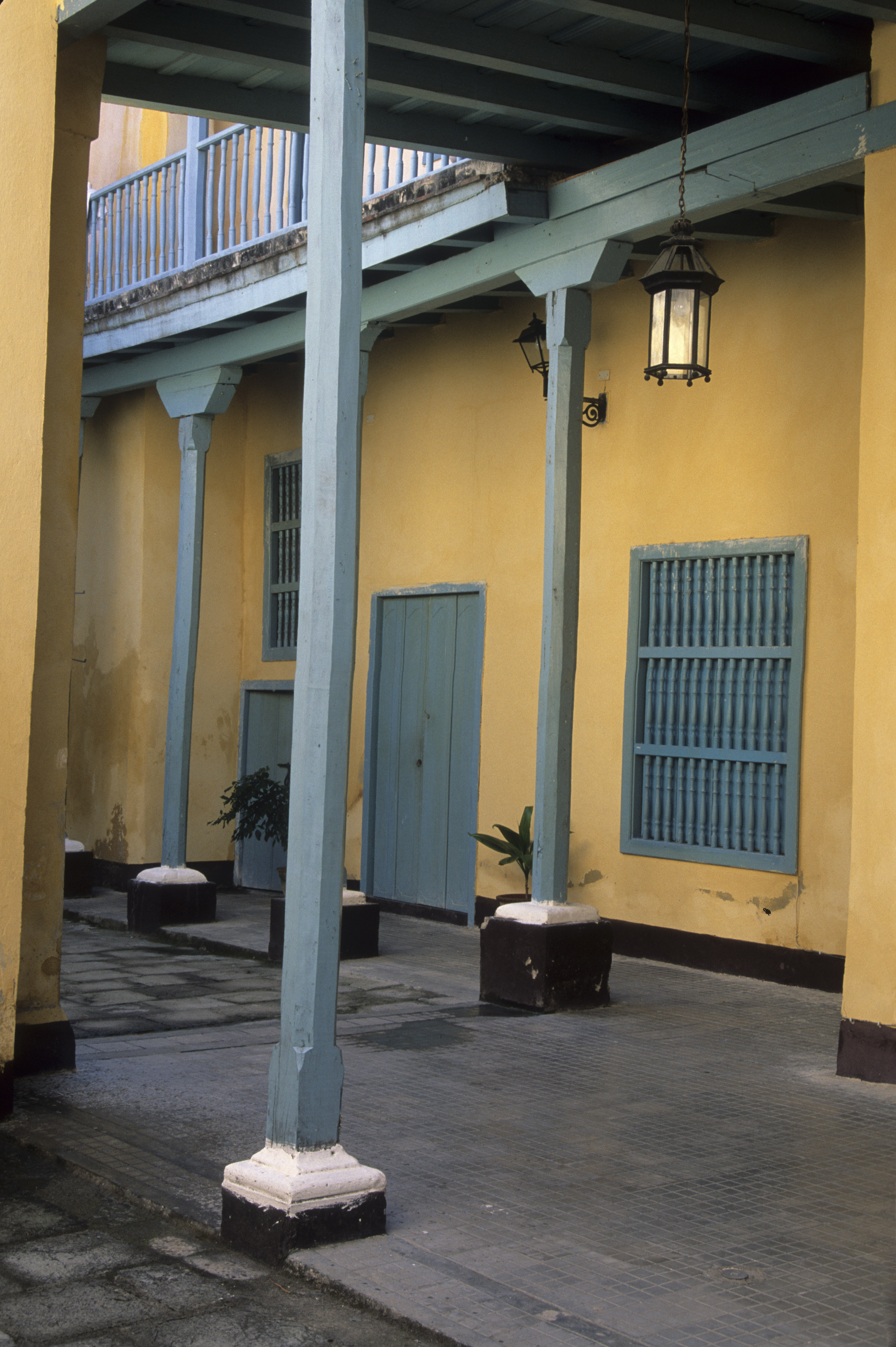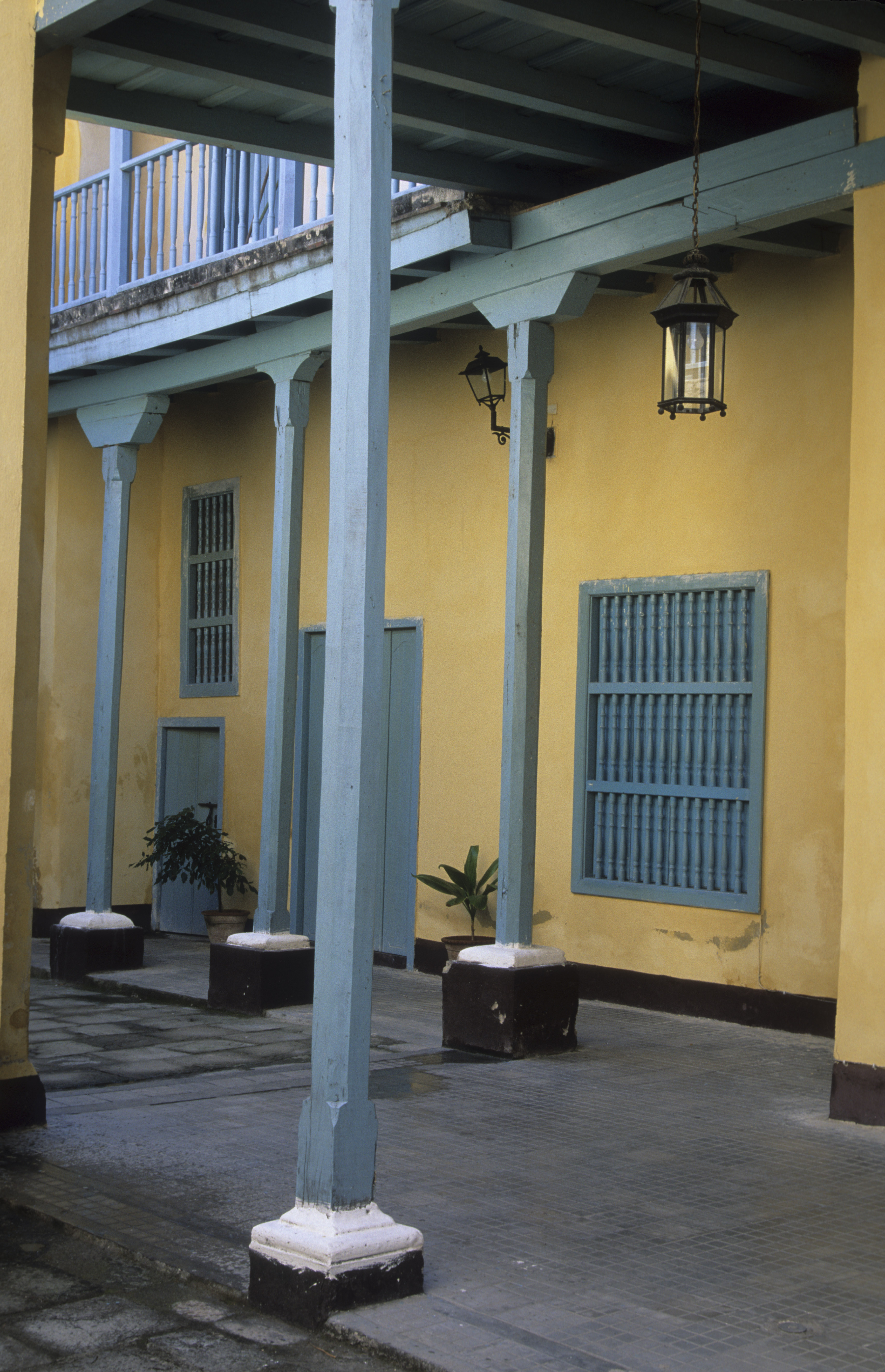The courtyard was visually chaotic when I first looked through my camera but with one step to the right I was able to hide the distant middle post behind the close one and the entire composition simplified.