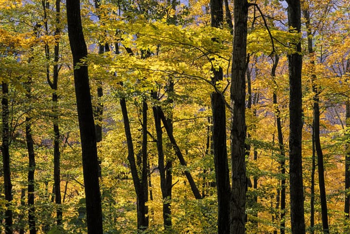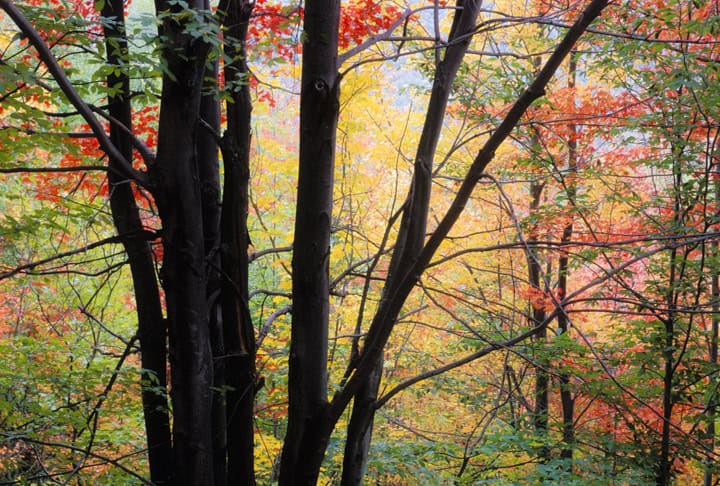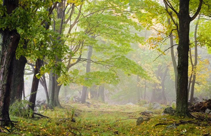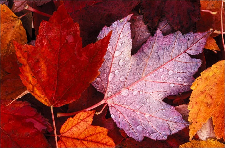 Photograph on cloudy, misty days for the richest colors but be sure to use a polarizing filter to cut the glare from the wet leaves. If it’s lightly raining go inside the forest for some protection. If it’s raining hard go out right after it stops.