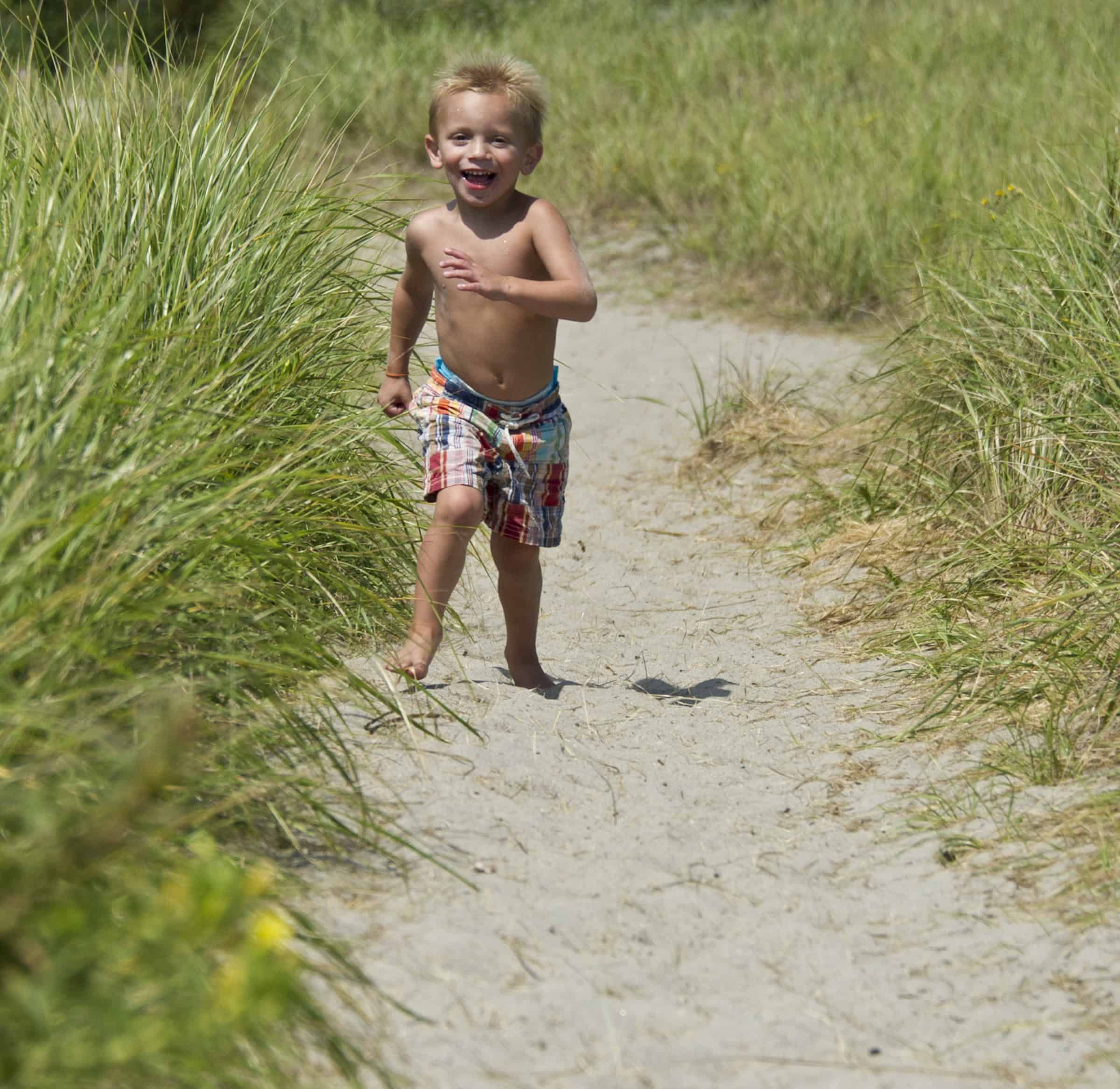 I was on the beach in Maine, mid-day, light awful in desperate need of summer beach shots. looking around I saw a little boy running up and down a sandy path to the beach playing a game with his dad. I walked over, asked his dad if I could take his son’s picture and blasted away. I got one chance, on run before the boy stopped. I kneeled down to his eye level, put the autofocus point on the boys chest and blasted away at 8 frames a second. 40 images later the shoot was over and I went back to the car happy to have gotten a shot.