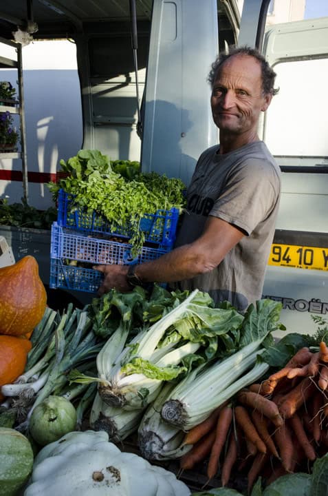This morning I visited the weekly market- half farmer’s, half commercial- in Savarne getting there early to take advantage of uncrowded stalls and the even light of dawn. With a clear sky I knew it would shortly be too bright and contrasty for photography. My strategy when photographing public spaces like a farmer’s market is to look for pretty light first then interesting subjects. I suppose I could look for interesting subjects first and then see if they are in nice light but my brain has been trained to look for good light so I start there.