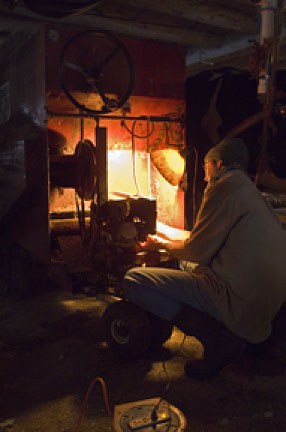Roger again in what he calls the Oil House. I call it, well never mind what I call it. I have always wanted to get a picture of Roger in the Oil House because the environment is so colorful and chaotic. I waited 4 years before I caught him there. He is only about 4 feet away from me but with my lens all the way down to 12mm and my back pressed against the wall I was able to get both Roger and all the stuff around him.