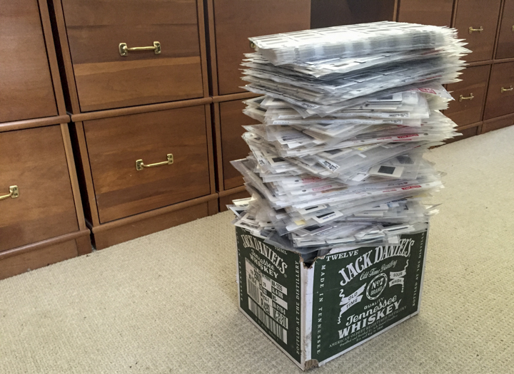 I just went through the same thing, though I didn’t have nearly as much old slides to toss as you. But I was able to reduce seven drawers in two four-drawer filing cabinets down to just one drawer. And a second round will reduce that even further.