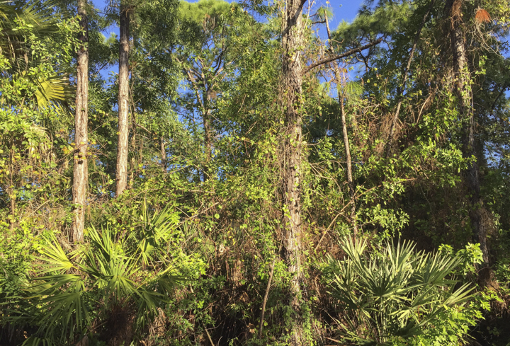I went out for a walk and found myself walking down a back road with natural Florida on one side of the road and exotic-filled Florida on the other side. The sad thing was that natural, original Florida is a rarely seen environment and the exotic Florida is everywhere. And I mean everywhere. It is so common and ubiquitous that the exotic, unnatural Florida appears to be the way it has always been.