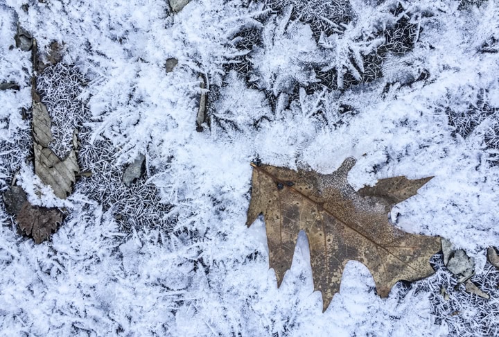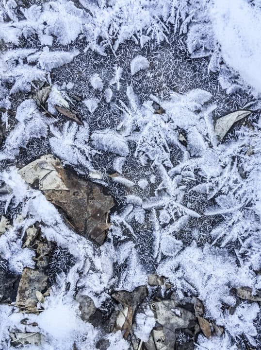 I went out for a walk and found a small puddle near a spring that was wonderfully etched with frost. Once again without my camera (will I ever learn?) I used my iPhone to take a couple of pics.