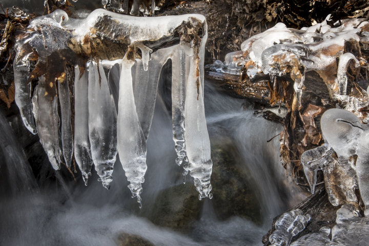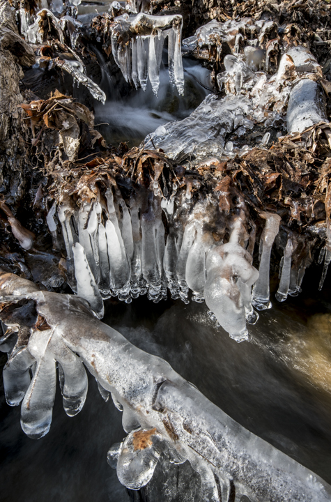 Where have you been? Boy, you’re a tough nut! And you also happen to be right. the problem is not the composition it is the light. When I got to the stream the sun came out so I did the best I could. I think if the light was flat you wouldn’t notice it as much and your attention would stay on the danglers. That being said I am going back to take the shot again. Those icicles are gone now from yesterday’s warm weather but this weekend it is supposed to get down to -15 so there should be lots more to play with.