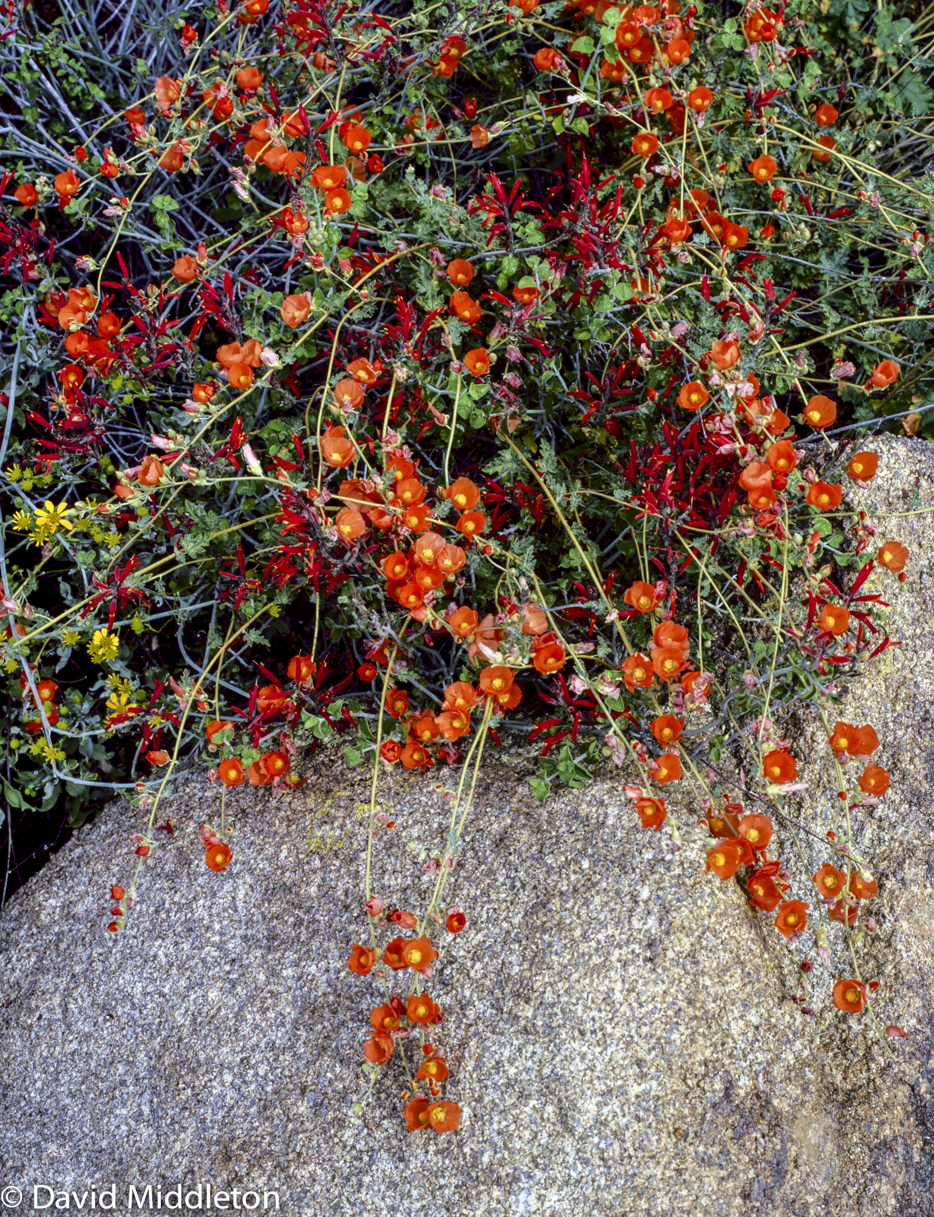 I took this Globemallow with my Pentax 6×7 medium format camera. It wasn’t very good for close-ups but from a couple of feet away it worked really well. I was lucky this day to have a thinly cloudy sky for just the perfect amount of soft light on the scene.